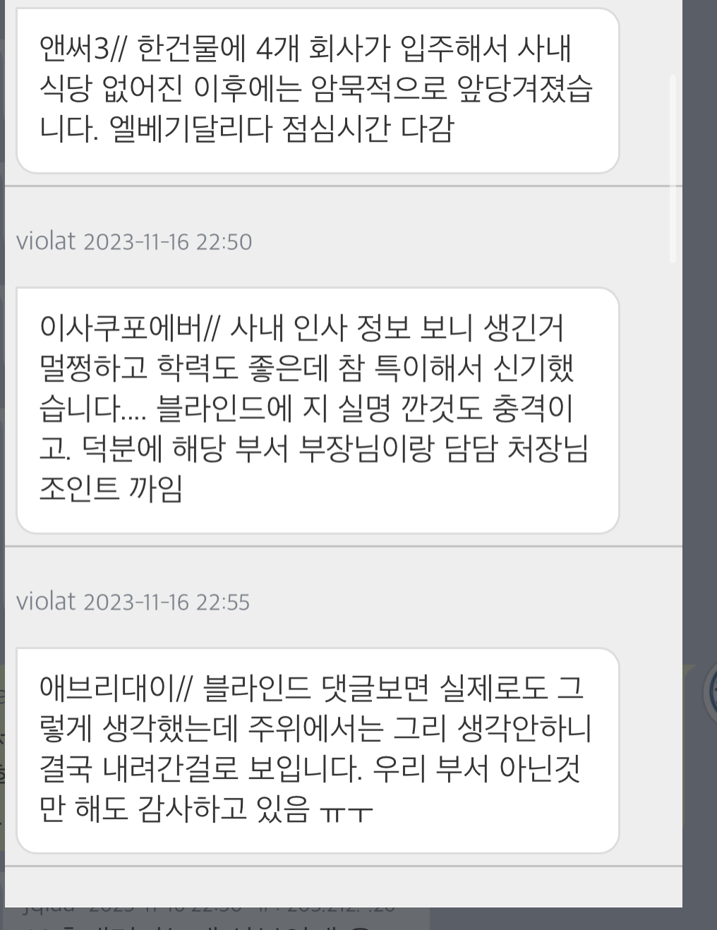 연예인 블라인드에 찌른 신입사원때문에 난리났다는 어느 회사 근황 ㄷㄷㄷ.JPG[44] 페이지 정보 작성자 댓글 0건 조회 769회 작성일 23-11-18 11:14 본문 댓글 2백개 정도 달렸는데회사가 이상하다는 사람들이랑 신입이 이상하다는 사람들이랑 의견갈려서백수라 현실을 모른다 직장어디다니는지 티가 난다 이러면서 지들끼리 막 싸움 이전글[쿠팡와우] 반다이 HG 캘리번 건담 (19,200원) (무료)[70] 다음글적으면 ㅅㅅ하는 노트.manhwa[31] 댓글목록 댓글목록 등록된 댓글이 없습니다.